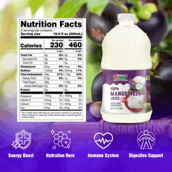 This juice has no sugar added and contains naturally occurring fruit sugars. With its practical, shareable format and clean, fruit-forward recipe, Vinut 100% Mangosteen Juice brings straightforward quality to breakfasts, gatherings, and everyday refreshment.